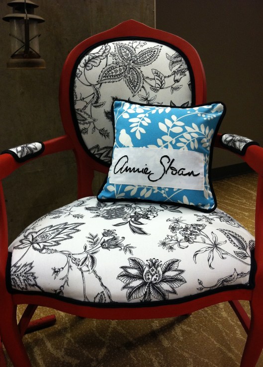 Chair painted by Budget ReDesign‘s Terry Eldridge in vibrant Annie Sloan Chalk Paint welcomed attendees to decorative paint guru Annie Sloan’s American Tour workshop. © 2012 EddinsImages