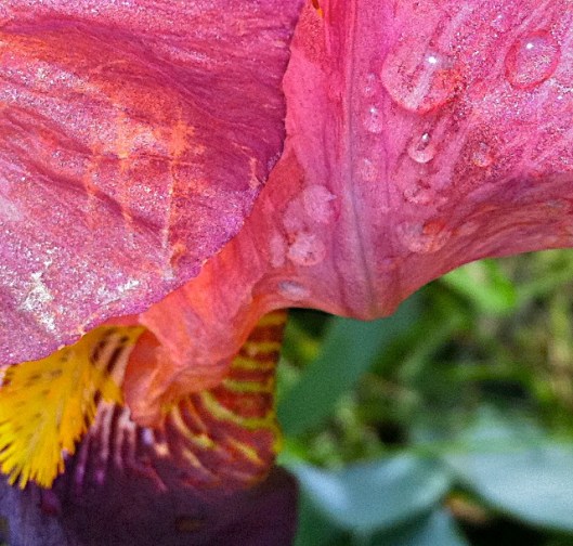 For an iris, “Batik” shows a rather conservatively sized yellow beard. Hybridized by grower Ensminger in 1985, the 26-36″ border bearded iris was awarded the American Iris Society Honorable Mention in 1988, the Award of Merit  in 1990, and the Knowlton Medal  in 1992. Like everything in my garden, this perennial plant is easy to grow and should return year after year. It likes sun, is drought tolerant and may be easily propagated by dividing rhizomes, tubers, or bulbs.