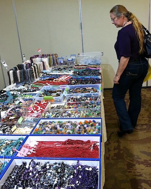 I have a friend who makes beautiful jewelry and accessories with beads.  Throughout the year, she travels to bead shows in our region. For several hours, she shops each show for beading materials.